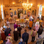 Престольный праздник прихода преподобного Сергия Радонежского в Светлогорске, 8 октября 2021. Божественную литургию совершил архиепископ Калининградский и Балтийский Серафим в сослужении благочинного Преображенского округа священника Игоря Ильницкого, настоятеля прихода священника Николая Губарева и духовенства Преображенского благочиния.